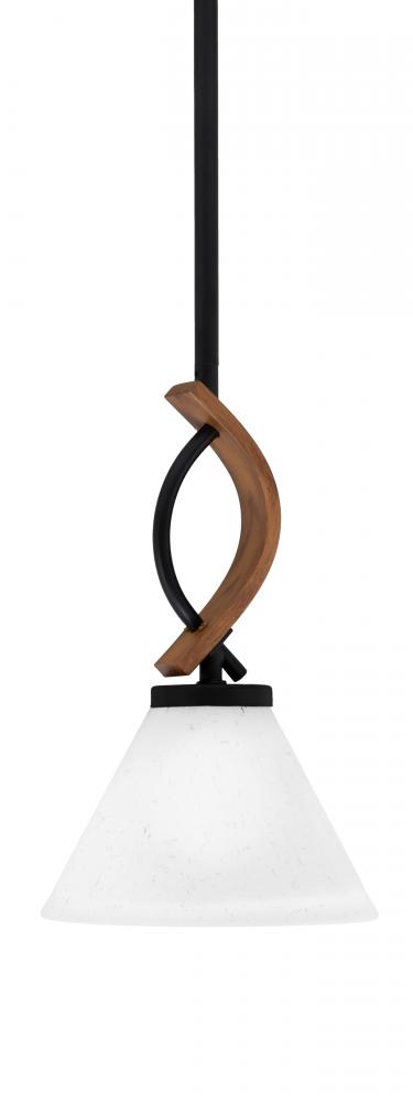 Toltec Lighting 2901-MBWG-312 Monterey 1 Light Mini Pendant Shown In Matte Black & Painted Wood-look Metal Finish With 7 White Muslin Glass