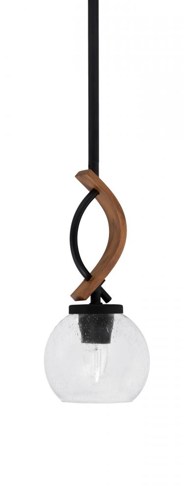 Toltec Lighting 2901-MBWG-4100 Monterey 1 Light Mini Pendant Shown In Matte Black & Painted Wood-look Metal Finish With 5.75 Clear Bubble Glass