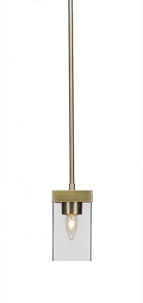 Toltec Lighting 3023-NAB-530 Nouvelle Stem Hung Mini Pendant Shown In New Age Brass Finish With 4 Square Clear Bubble Glass