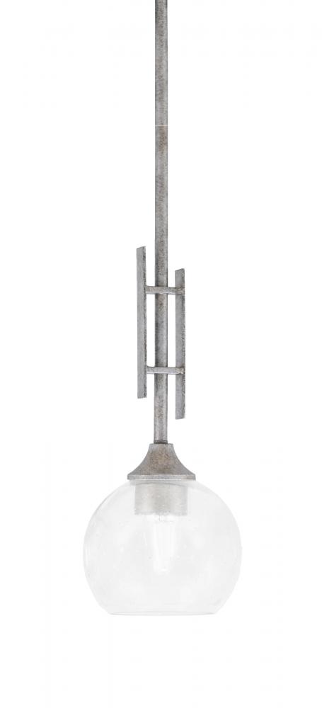 Toltec Lighting 320-AS-4100 Uptowne Stem Hung Mini Pendant, Aged Silver Finish, 5.75 Clear Bubble Glass
