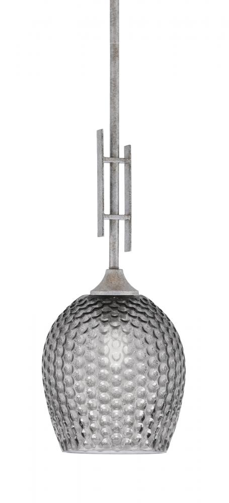 Toltec Lighting 320-AS-4902 Uptowne Stem Hung Mini Pendant, Aged Silver Finish, 7.5 Smoke Textured Glass