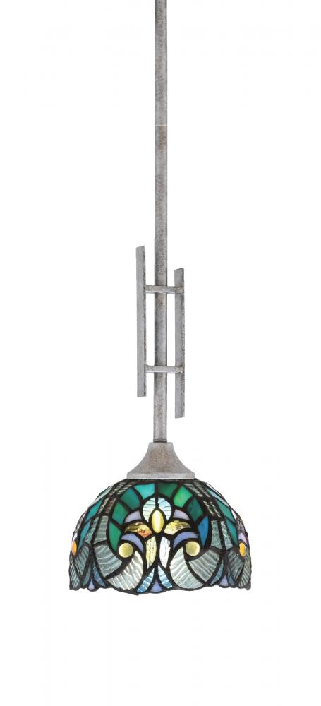 Toltec Lighting 320-AS-9925 Uptowne Stem Hung Mini Pendant, Aged Silver Finish, 7 Turquoise Cypress Art Glass