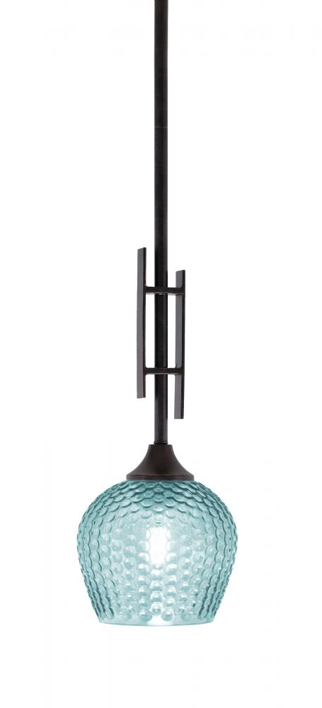 Toltec Lighting 320-DG-4605 Uptowne Stem Hung Mini Pendant, Dark Granite Finish, 6 Turquoise Textured Glass