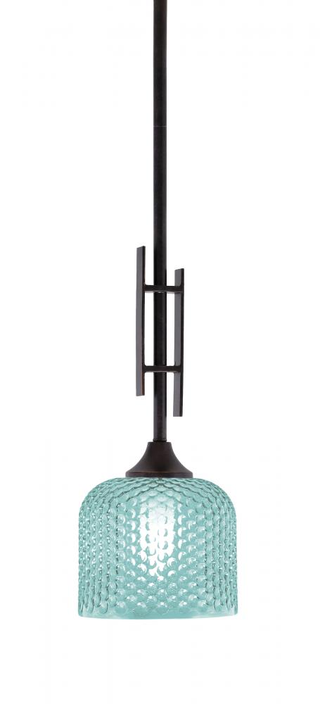 Toltec Lighting 320-DG-4615 Uptowne Stem Hung Mini Pendant, Dark Granite Finish, 6 Turquoise Textured Glass