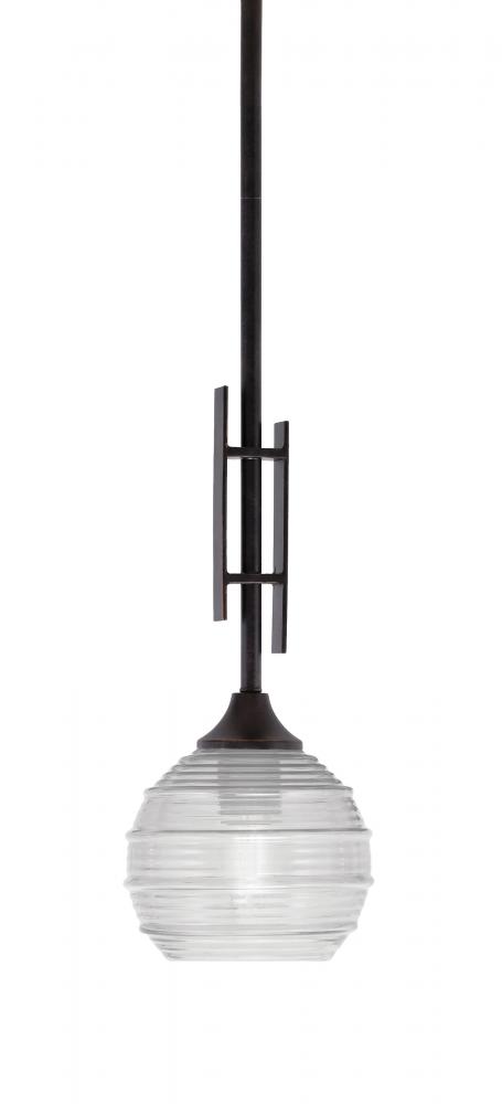 Toltec Lighting 320-DG-5110 Uptowne Stem Hung Mini Pendant, Dark Granite Finish, 6 Clear Ribbed Glass