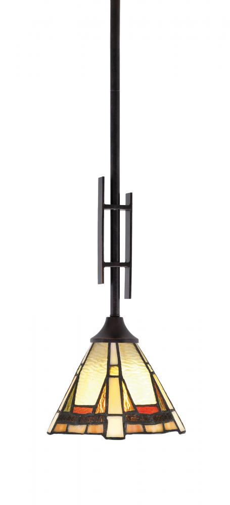 Toltec Lighting 320-DG-9345 Uptowne Stem Hung Mini Pendant, Dark Granite Finish, 7 Zion Art Glass