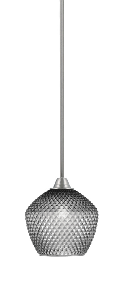 Paramount Stem Hung Mini Pendant Shown In Brushed Nickel Finish With 9 Smoke Textured Glass