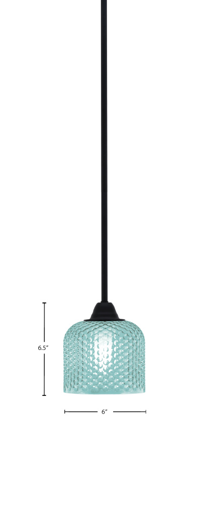 Paramount Stem Hung Mini Pendant Shown In Matte Black Finish With 6 Turquoise Textured Glass