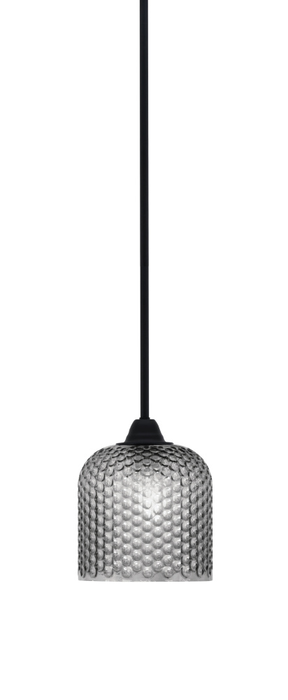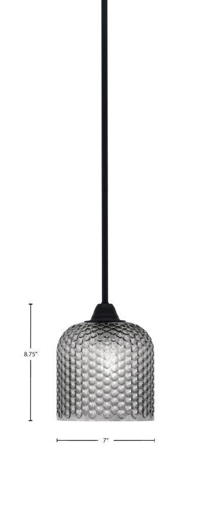 Paramount Stem Hung Mini Pendant Shown In Matte Black Finish With 7 Smoke Textured Glass