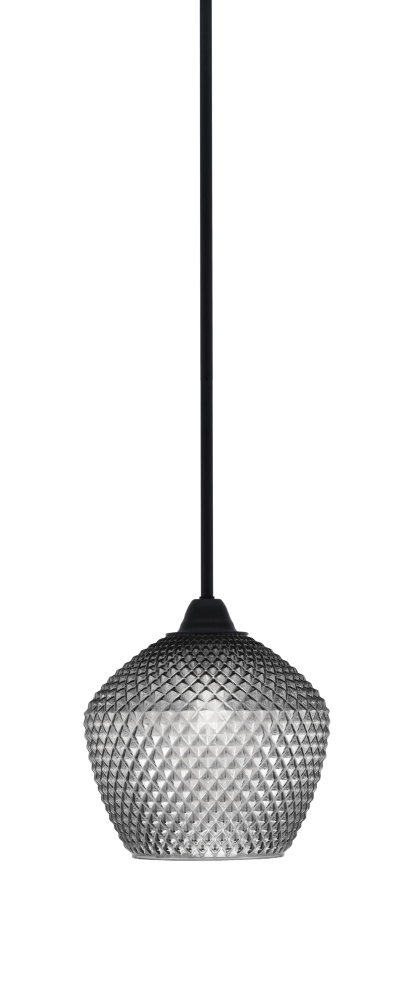 Paramount Stem Hung Mini Pendant Shown In Matte Black Finish With 9 Smoke Textured Glass