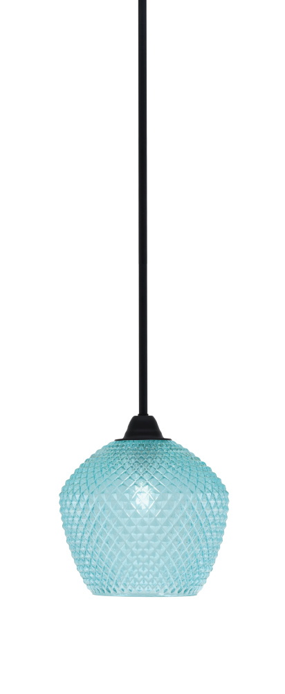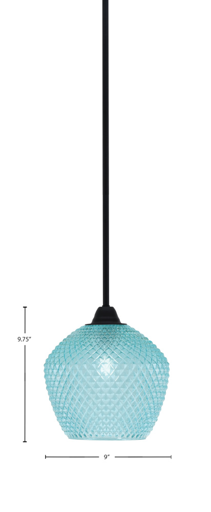 Paramount Stem Hung Mini Pendant Shown In Matte Black Finish With 9 Turquoise Textured Glass