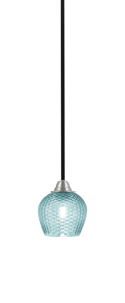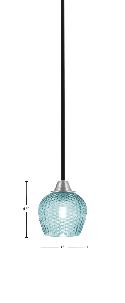 Paramount Stem Hung Mini Pendant Shown In Matte Black & Brushed Nickel Finish With 6 Turquoise Textured Glass