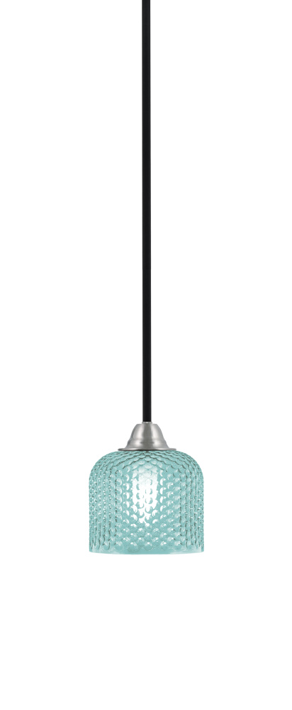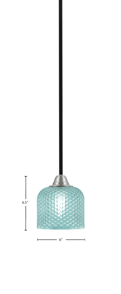 Paramount Stem Hung Mini Pendant Shown In Matte Black & Brushed Nickel Finish With 6 Turquoise Textured Glass