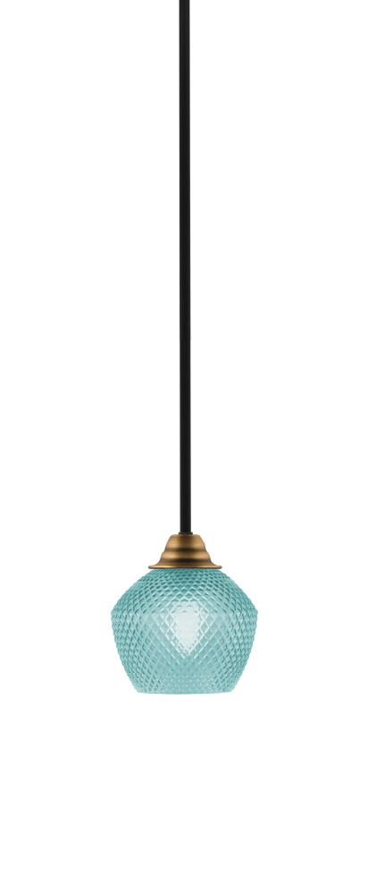 Paramount Stem Hung Mini Pendant Shown In Matte Black & Brass Finish With 6 Turquoise Textured Glass