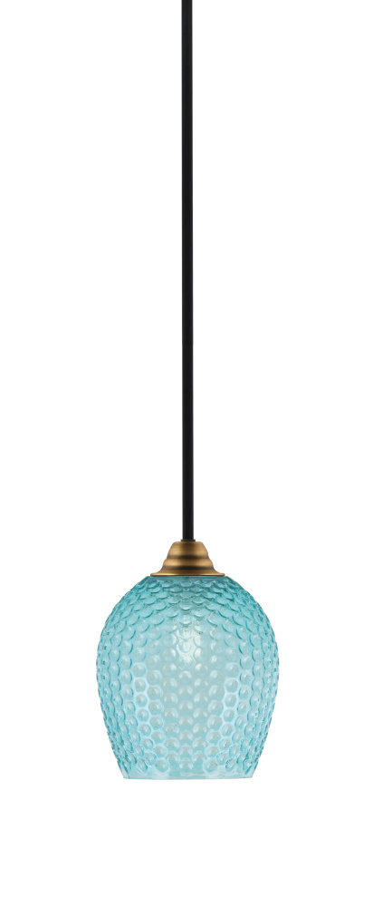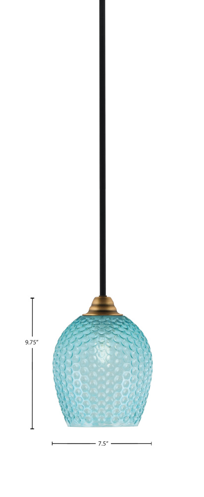 Paramount Stem Hung Mini Pendant Shown In Matte Black & Brass Finish With 7.5 Turquoise Textured Glass