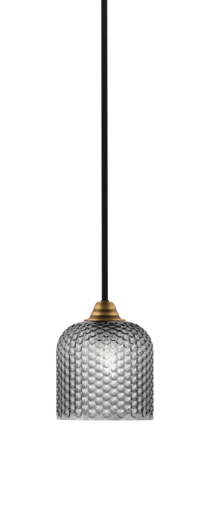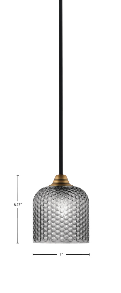 Paramount Stem Hung Mini Pendant Shown In Matte Black & Brass Finish With 7 Smoke Textured Glass