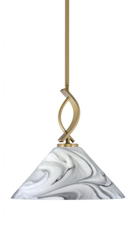 Toltec Lighting 3901-NAB-2129 Cavella Stem Hung Mini Pendant, New Age Brass Finish, 12 Onyx Swirl Glass