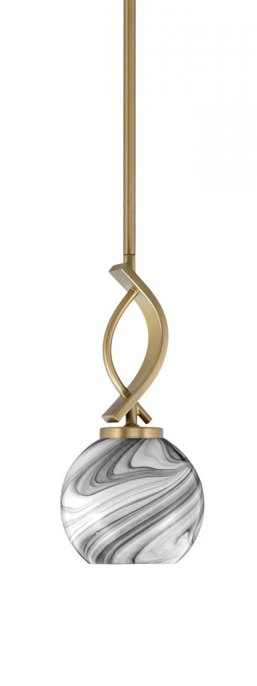 Toltec Lighting 3901-NAB-4109 Cavella Stem Hung Mini Pendant, New Age Brass Finish, 5.75 Onyx Swirl Glass