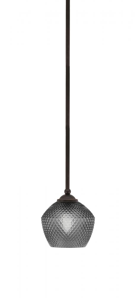 Zilo Stem Hung Mini Pendant Shown In Dark Granite Finish With 6 Smoke Textured Glass