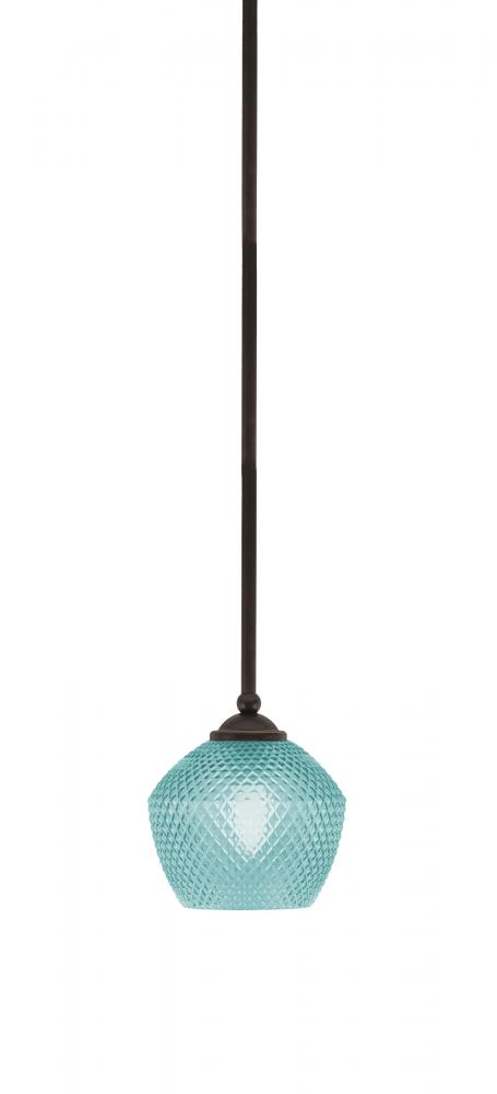 Zilo Stem Hung Mini Pendant Shown In Dark Granite Finish With 6 Turquoise Textured Glass