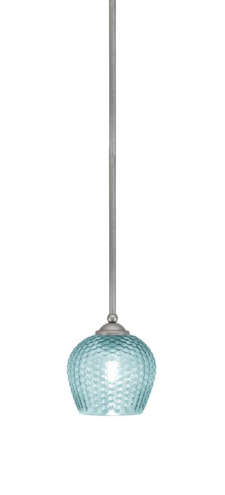 Zilo Stem Hung Mini Pendant Shown In Graphite Finish With 6 Turquoise Textured Glass