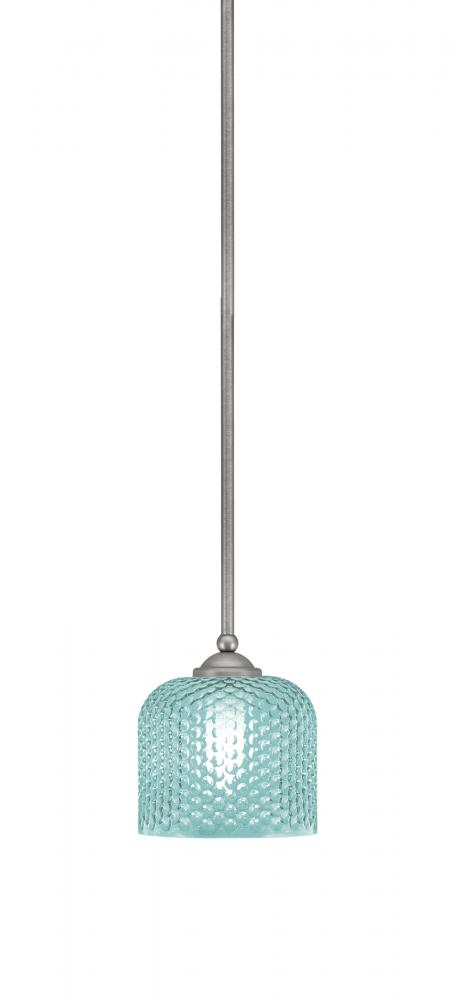 Zilo Stem Hung Mini Pendant Shown In Graphite Finish With 6 Turquoise Textured Glass