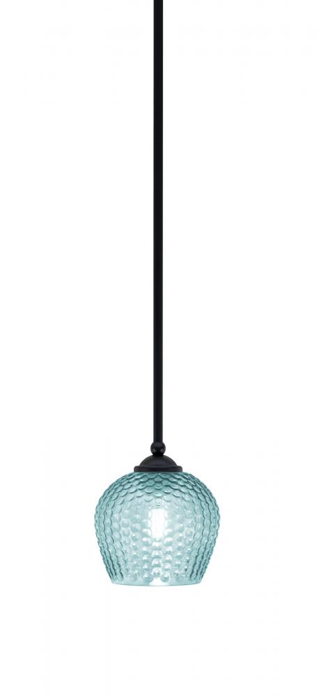 Zilo Stem Hung Mini Pendant Shown In Matte Black Finish With 6 Turquoise Textured Glass
