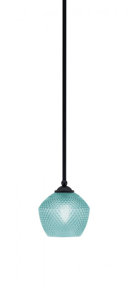 Zilo Stem Hung Mini Pendant Shown In Matte Black Finish With 6 Turquoise Textured Glass