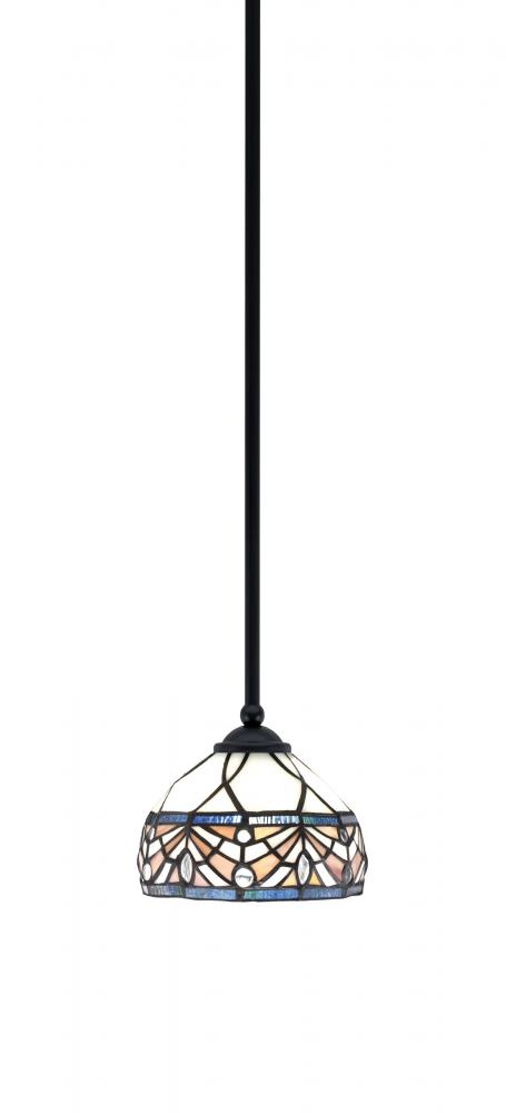Toltec Lighting 560-MB-9485 Zilo Stem Mini Pendant, Matte Black Finish, 7 Royal Merlot Art Glass