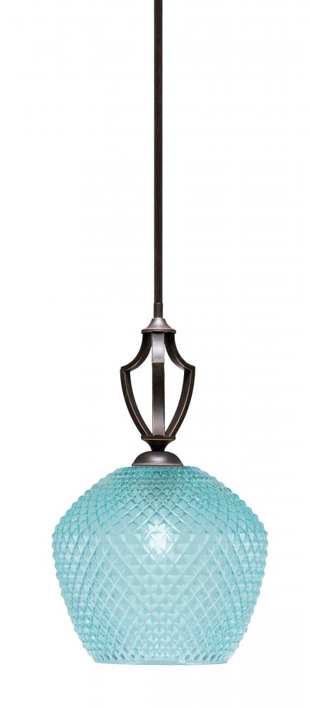 Zilo Stem Hung Mini Pendant Shown In Dark Granite Finish With 9 Turquoise Textured Glass