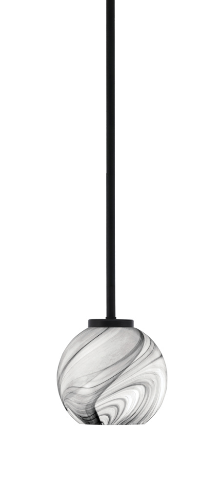 Sandia 1 Light Stem Mini Pendant, Matte Black Finish, 7 Turquoise Textured Glass