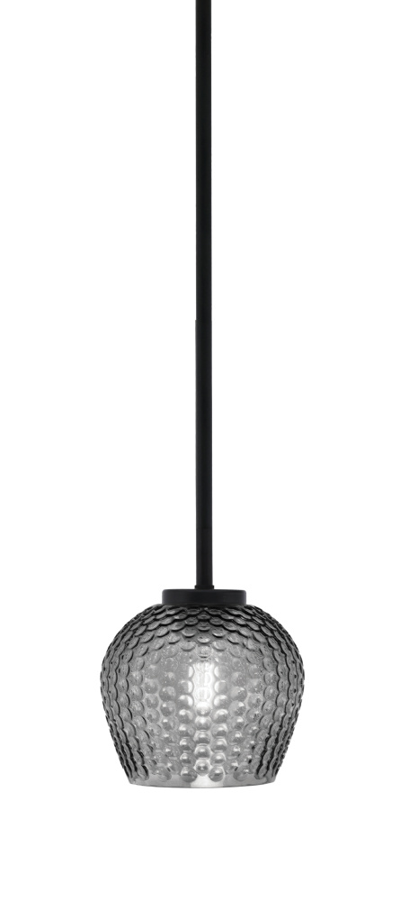 Sandia 1 Light Stem Mini Pendant, Matte Black Finish, 6 Smoke Ribbed Glass