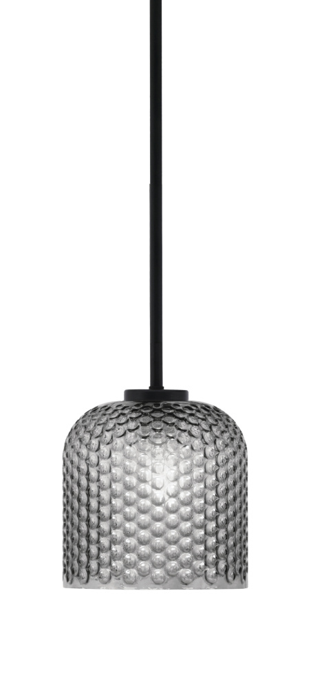 Sandia 1 Light Stem Mini Pendant, Matte Black Finish, 13 Chrome Double Bubble Metal Shade