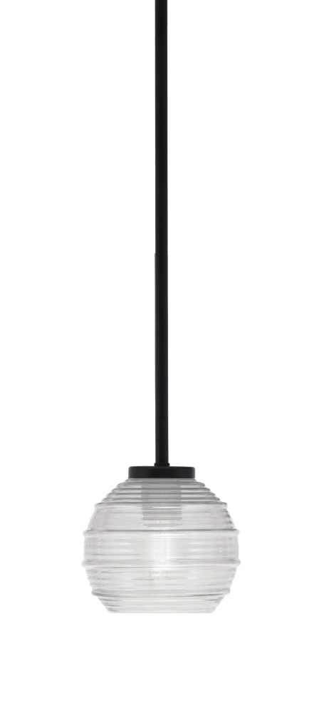 Sandia 1 Light Stem Mini Pendant, Matte Black Finish, 7 Matte Black Cone Mesh Metal Shade