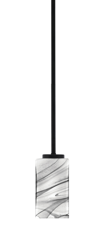 Sandia 1 Light Stem Mini Pendant, Matte Black Finish, 6 Turquoise Textured Glass