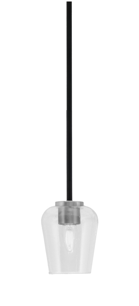 Sandia 1 Light Stem Mini Pendant, Matte Black & Graphite Finish, 5 Clear Bubble Glass
