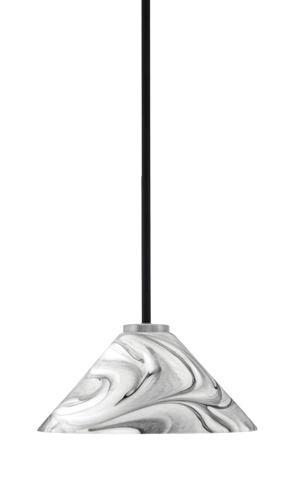 Sandia 1 Light Stem Mini Pendant, Matte Black & Graphite Finish, 12 Onyx Swirl Glass
