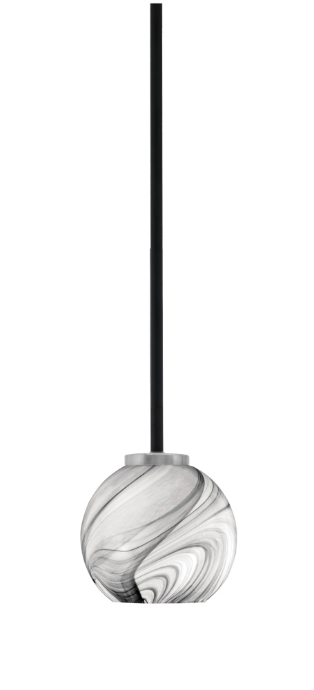 Sandia 1 Light Stem Mini Pendant, Matte Black & Graphite Finish, 5.75 Onyx Swirl Glass