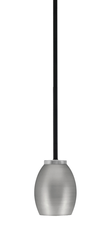 Sandia 1 Light Stem Mini Pendant, Matte Black & Graphite Finish, 5 Graphite Oval Metal Shade