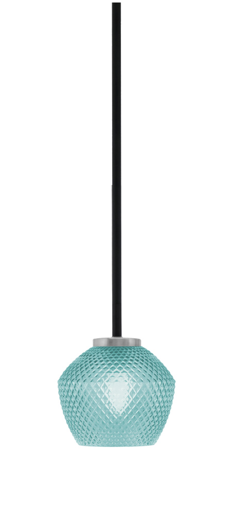 Sandia 1 Light Stem Mini Pendant, Matte Black & Graphite Finish, 6 Turquoise Textured Glass