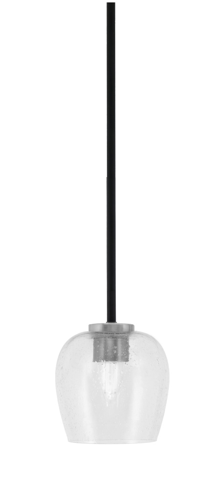 Sandia 1 Light Stem Mini Pendant, Matte Black & Graphite Finish, 6 Clear Bubble Glass