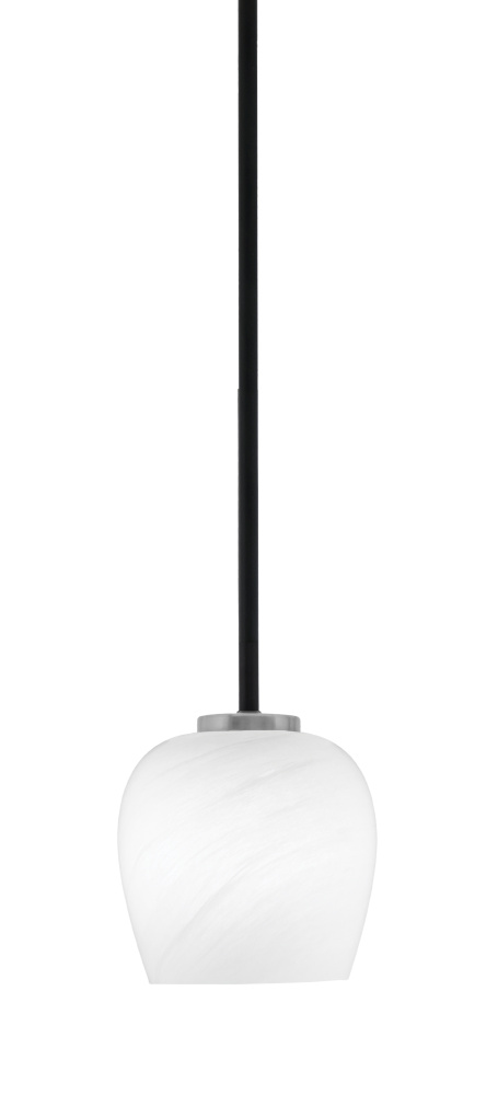 Sandia 1 Light Stem Mini Pendant, Matte Black & Graphite Finish, 6 White Marble Glass