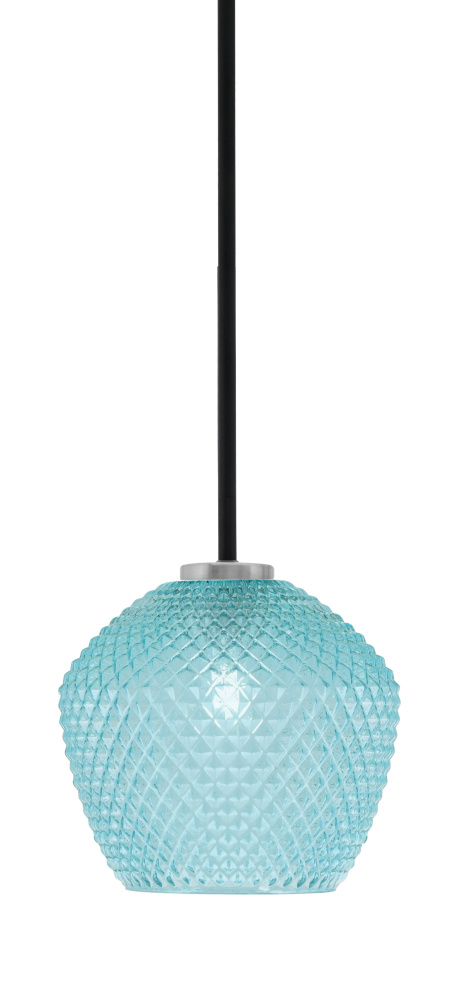 Sandia 1 Light Stem Mini Pendant, Matte Black & Graphite Finish, 9 Turquoise Textured Glass