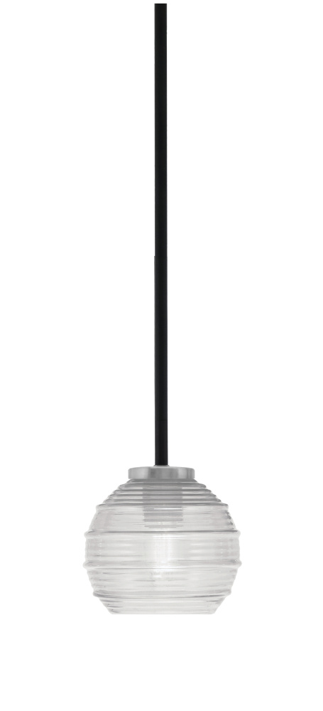 Sandia 1 Light Stem Mini Pendant, Matte Black & Graphite Finish, 6 Clear Ribbed Glass