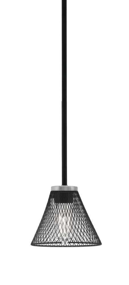 Sandia 1 Light Stem Mini Pendant, Matte Black & Graphite Finish, 7 Matte Black Cone Mesh Metal Shade