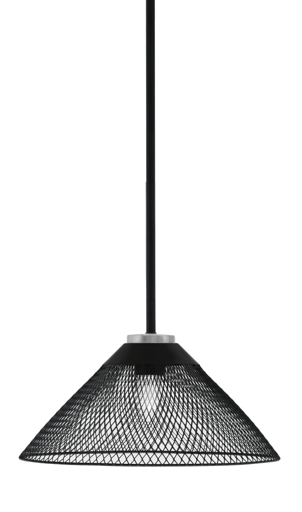 Sandia 1 Light Stem Pendant, Matte Black & Graphite Finish, 14 Matte Black Cone Mesh Metal Shade