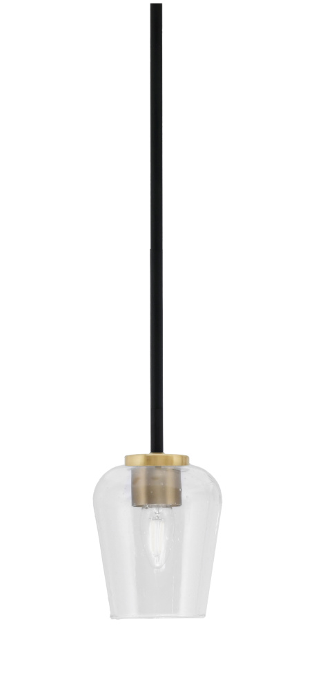 Sandia 1 Light Stem Mini Pendant, Matte Black & New Age Brass Finish, 5 Clear Bubble Glass