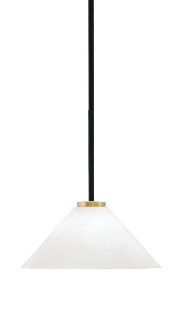 Sandia 1 Light Stem Mini Pendant, Matte Black & New Age Brass Finish, 12 White Marble Glass