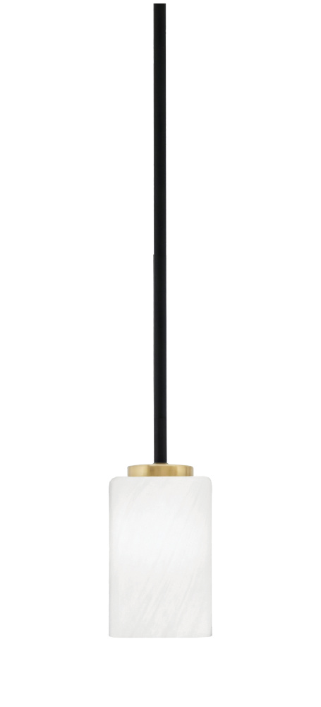 Sandia 1 Light Stem Mini Pendant, Matte Black & New Age Brass Finish, 4 White Marble Glass