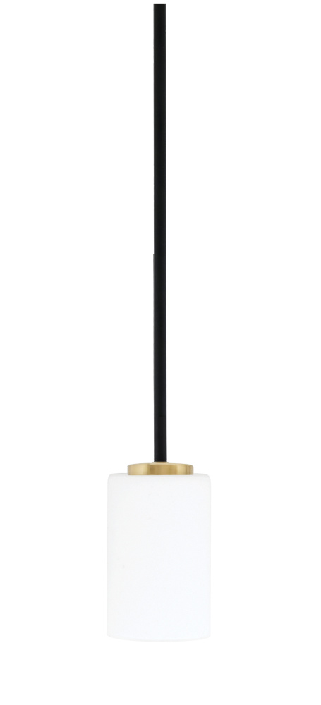 Sandia 1 Light Stem Mini Pendant, Matte Black & New Age Brass Finish, 4 White Muslin Glass